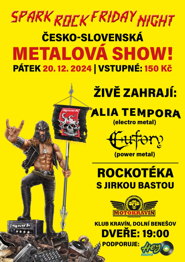 Časopis Spark a label Smile Music Records pořádají druhou Spark Rock Friday Night, která proběhne v už prověřeném klubu Kravín v Dolním Benešově. Přijďte si 20. prosince užít večer plný skvělé hudby s EUFORY a ALIA TEMPORA.