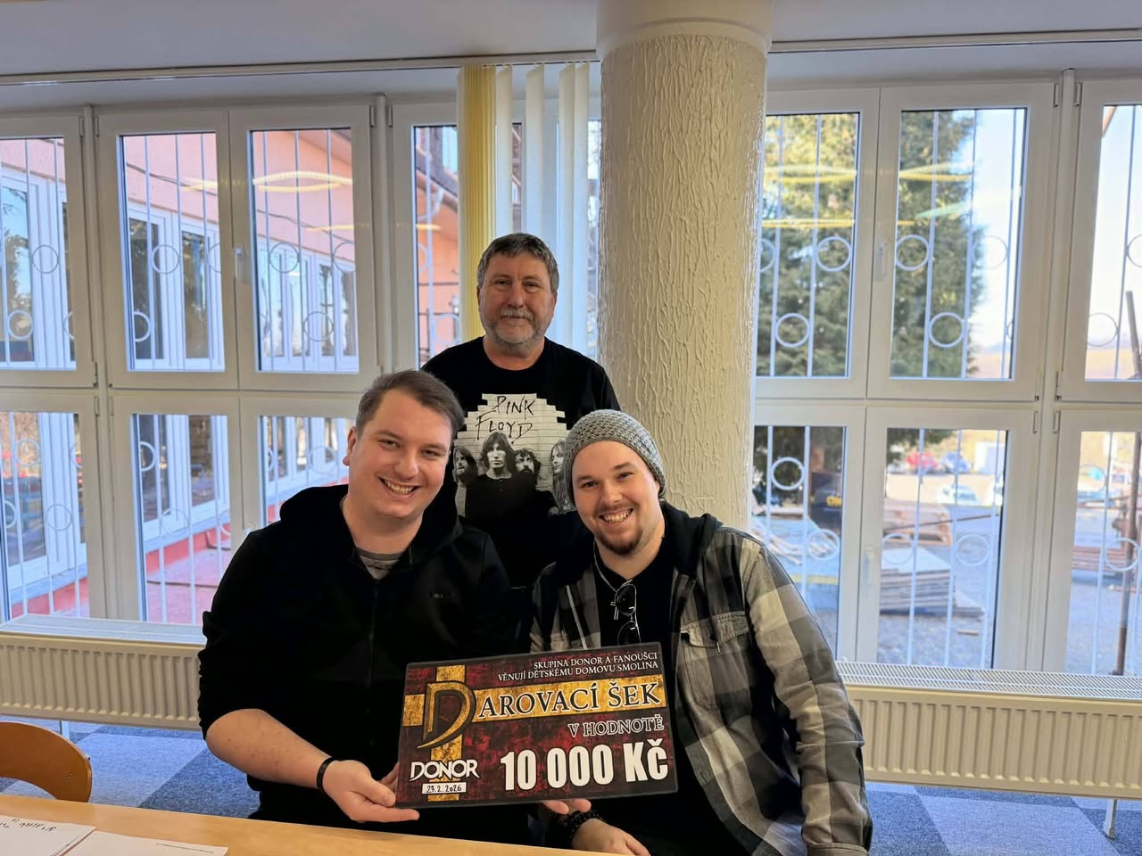 Tato podpora, kterou od svých fanoušků DONOR mají – to, že aktivně chodíte na jejich koncerty, kupujete jejich merch a alba, kapele umožnilo předat finanční i materiální dar Dětskému domovu ve Smolině u Valašských Klobouk.